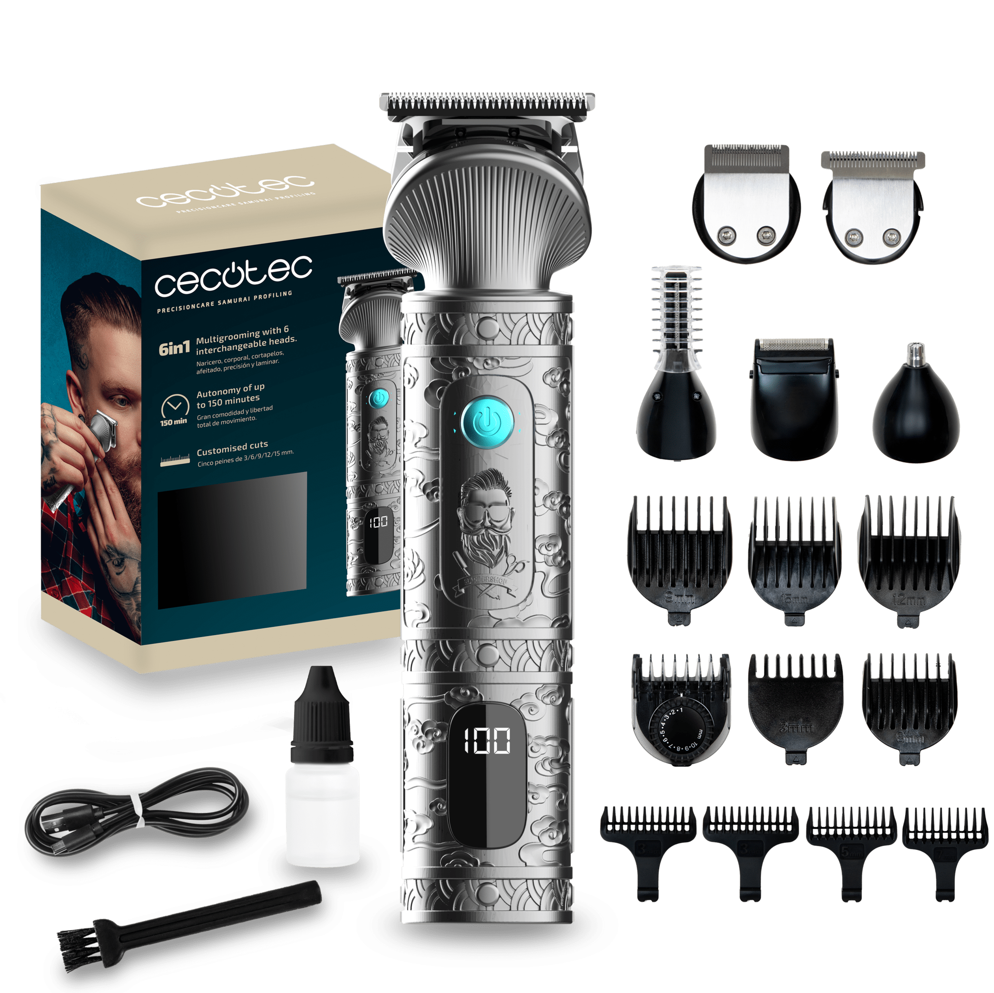 PrecisionCare Samurai Profiling Multigrooming con 6 cabezales, 10 peines para diferentes zonas, cuchilla de acero inoxidable y 170 minutos de autonomía