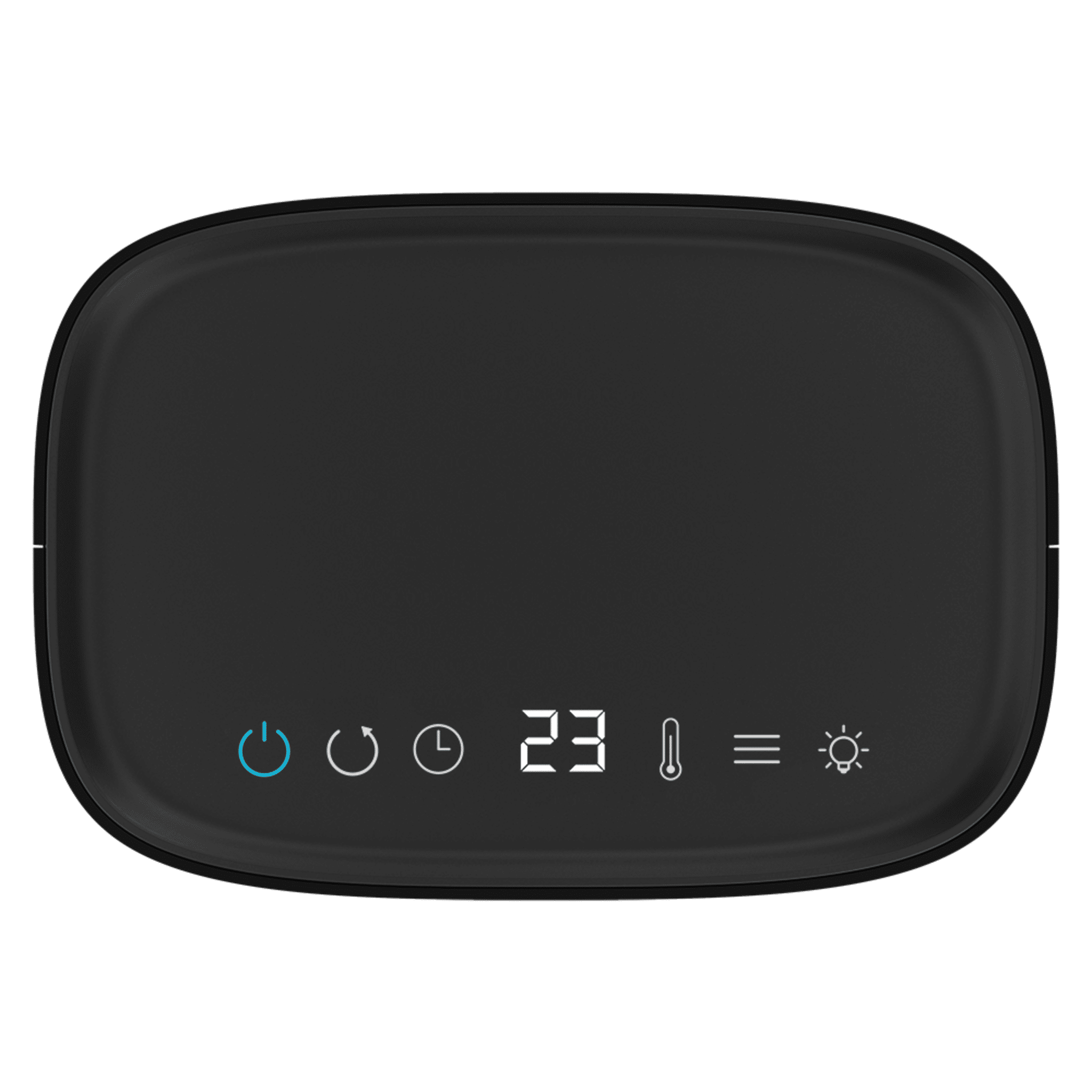 Calefactor cerámico de sobremesa color negro. 1500W. Termoestato ajustable. Cubre área de 15m2. Rotativo. Ventilador y modo eco. Pantalla LED