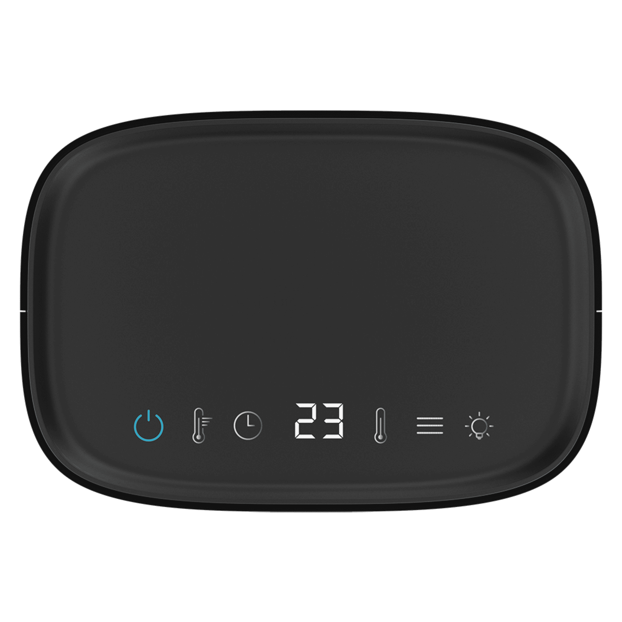 Calefactor cerámico de sobremesa color negro. 1500W. Termoestato ajustable. Cubre área de 15m2. Rotativo. Ventilador y modo eco.