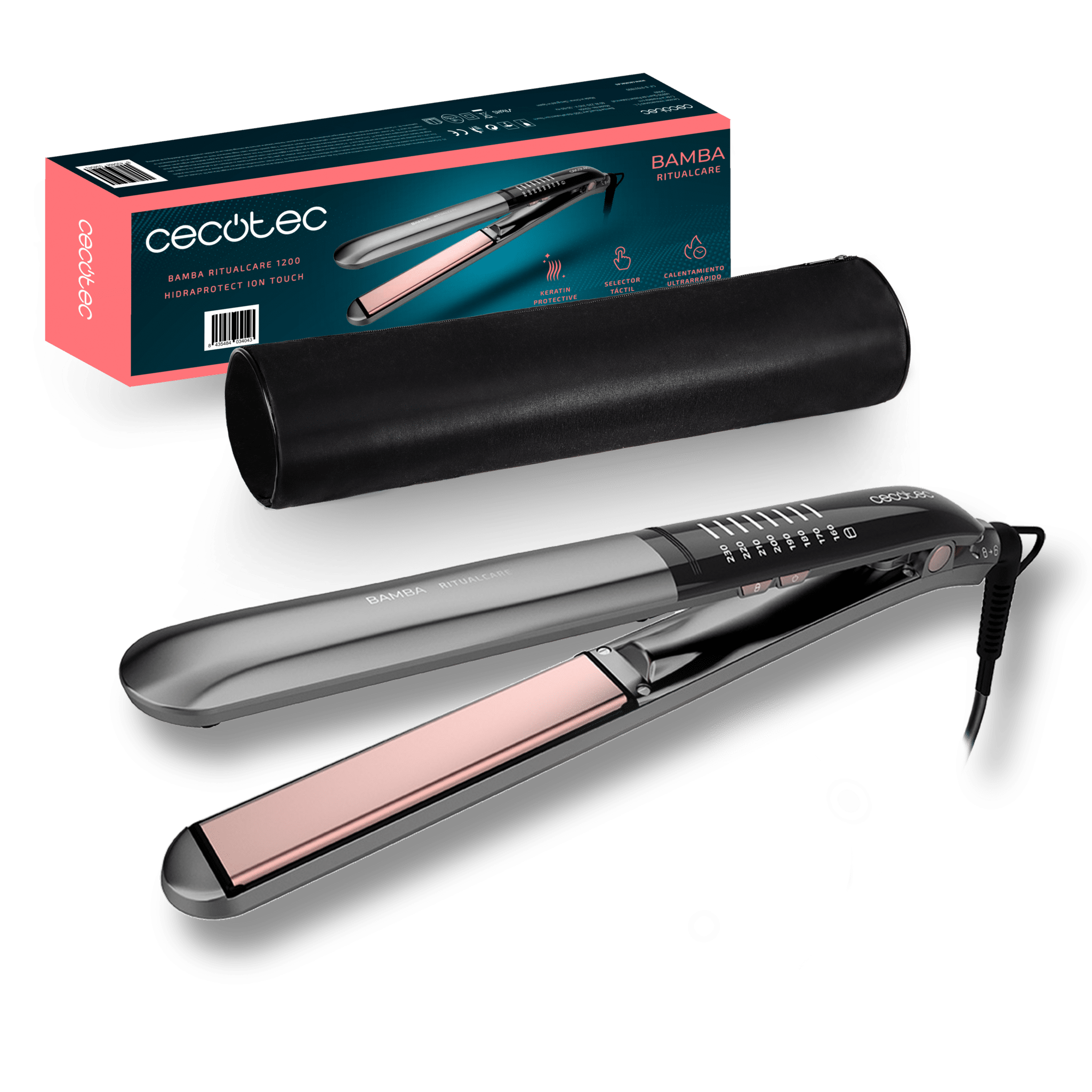 Plancha de pelo de turmalina con queratina y aceite de argán táctil con ion real.