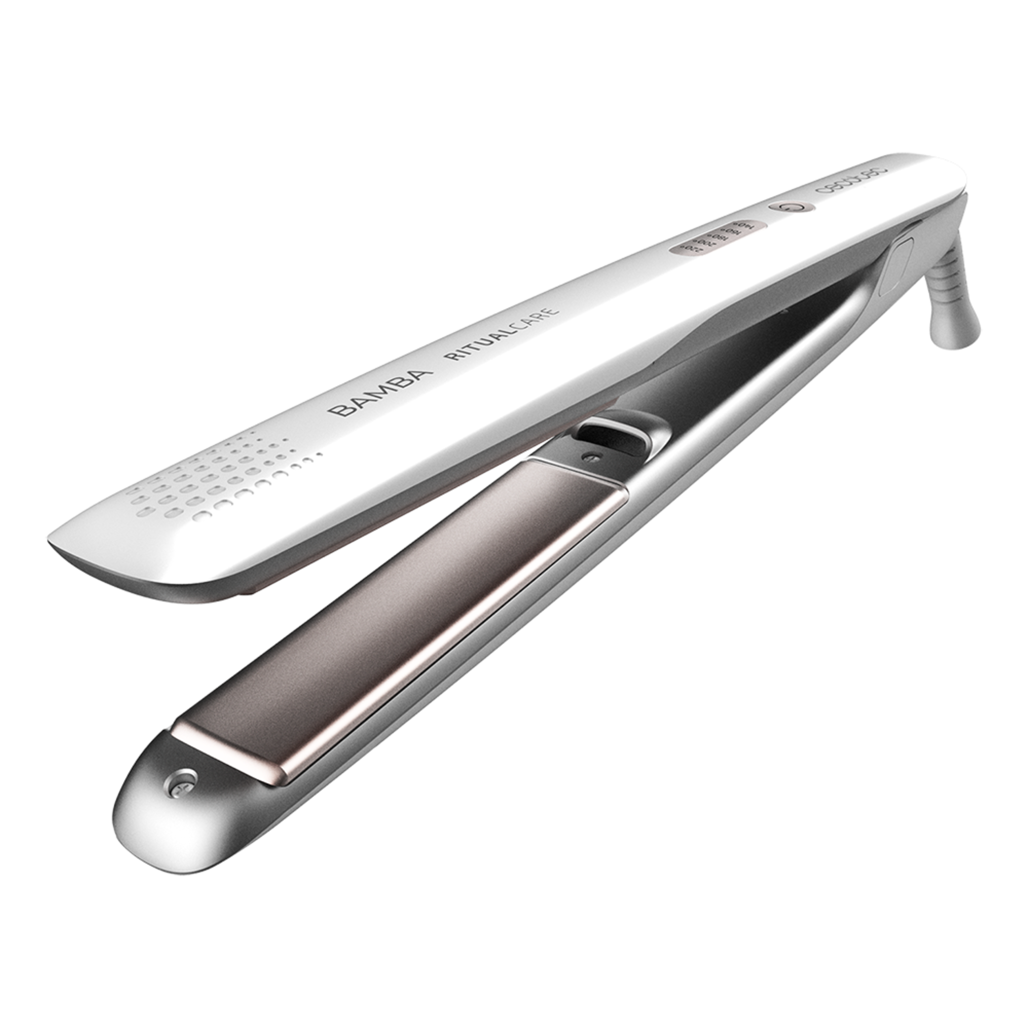 Plancha de pelo Bamba Ritual Care 885 Hidraprotect, con revestimiento de Queratina y aceite de Argán, ion real, temperatura ajustable 140-220ºC
