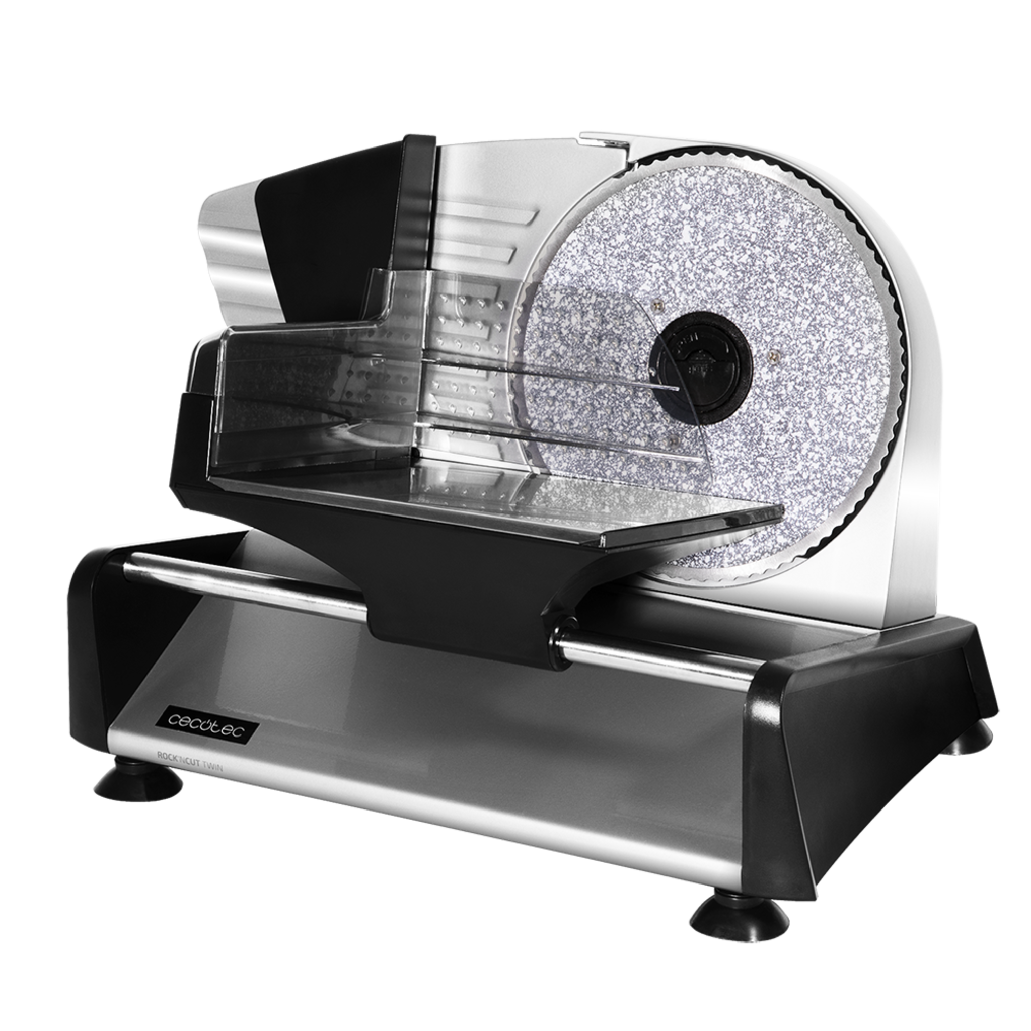 Cortafiambres Rock’nCut Twin. 180 W con 2 Discos Intercambiables para Cortar Fiambre o Pan, Revestimiento RockStone Antiadherente, Precisión de Grosor hasta 15 mm