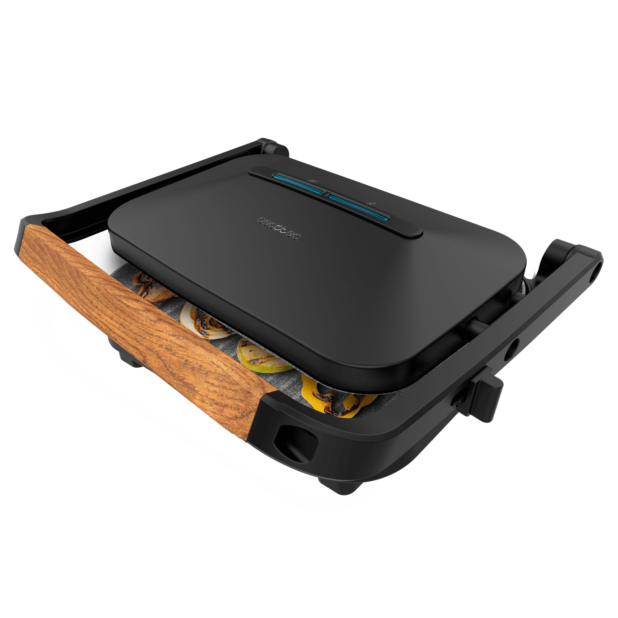 Parrilla eléctrica, con revestimiento de piedra RockStone y 1300 W de potencia.