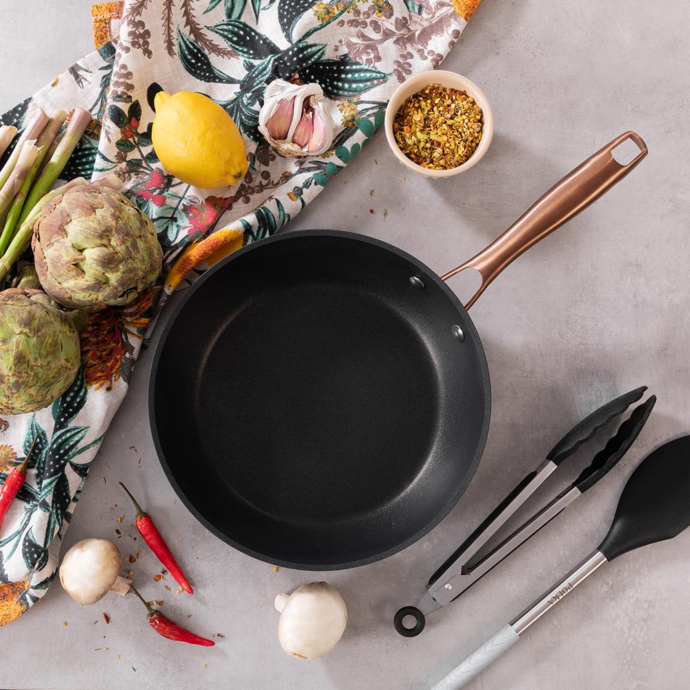 Sartén Polka Fantasy 24 Bucket Golden. Diámetro 24, Aluminio Forjado, Revestimiento Antiadherente Platinum Plus Teflon, Libre PFOA, Mango de Acero Inox, Apta para Inducción