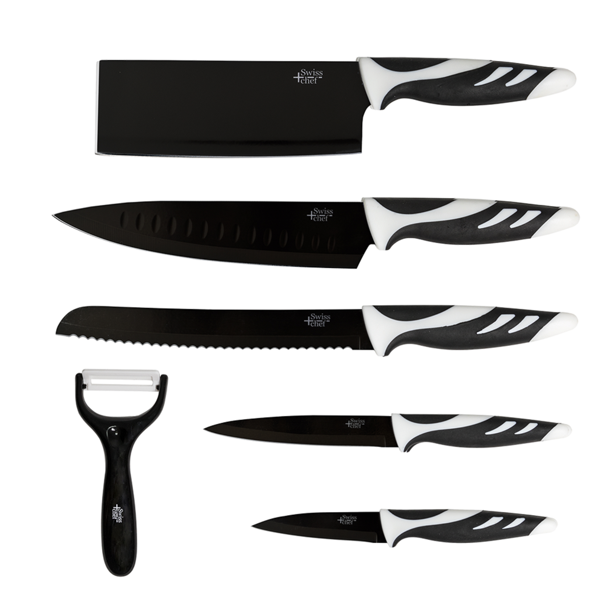 Juego de 6 Cuchillos de Cocina de Alta Gama. Cuchillos Profesionales de Estilo Suizo. Color Blanco o Negro. Swiss Chef (Negro)