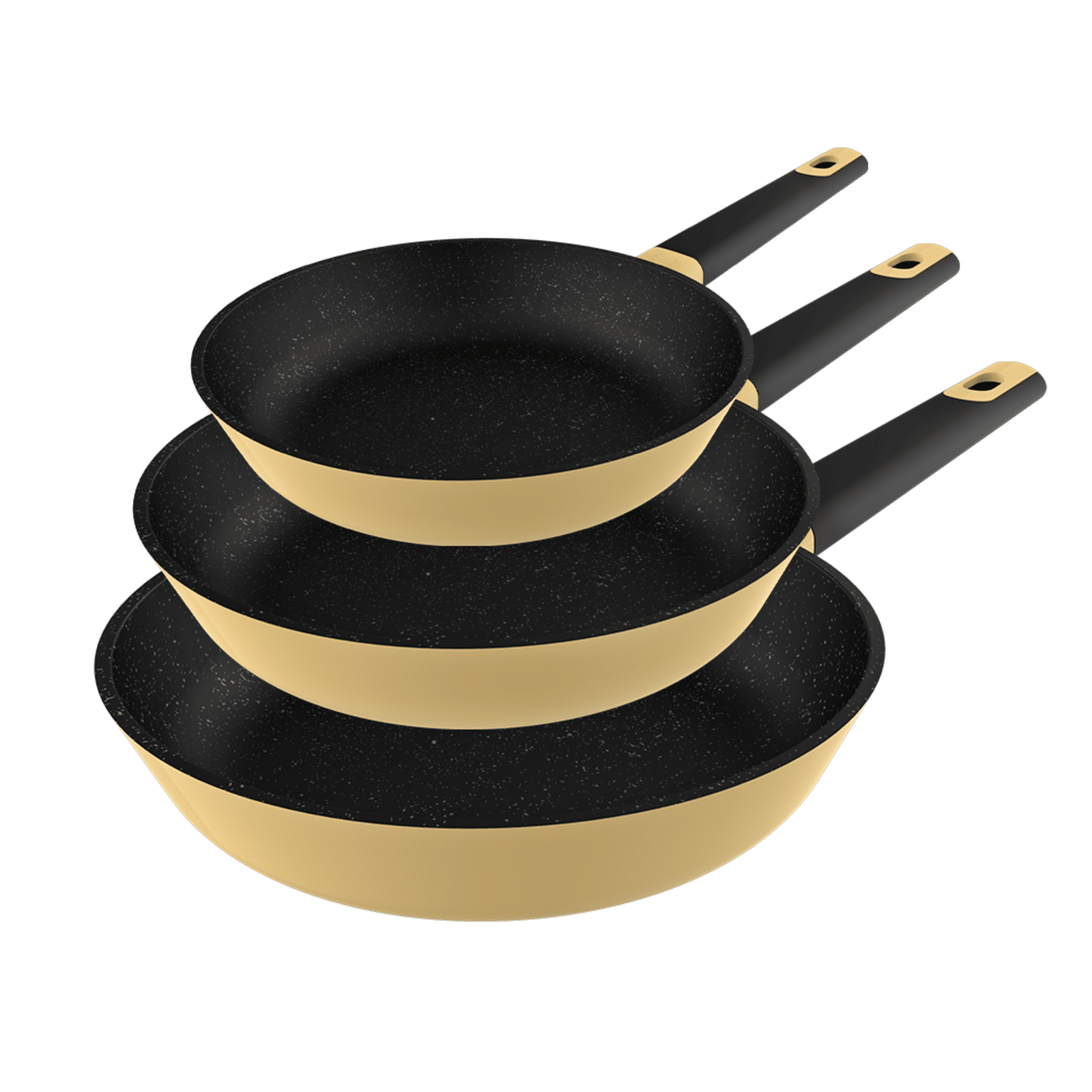 Set de Sartenes Polka Experience 20-24-28 Bucket Set Vulcano. Diámetro 20-24-28, Aluminio Fundido, Revestimiento Antiadherente, Apta para todo tipo de Cocinas y Lavavajillas, Amarillo