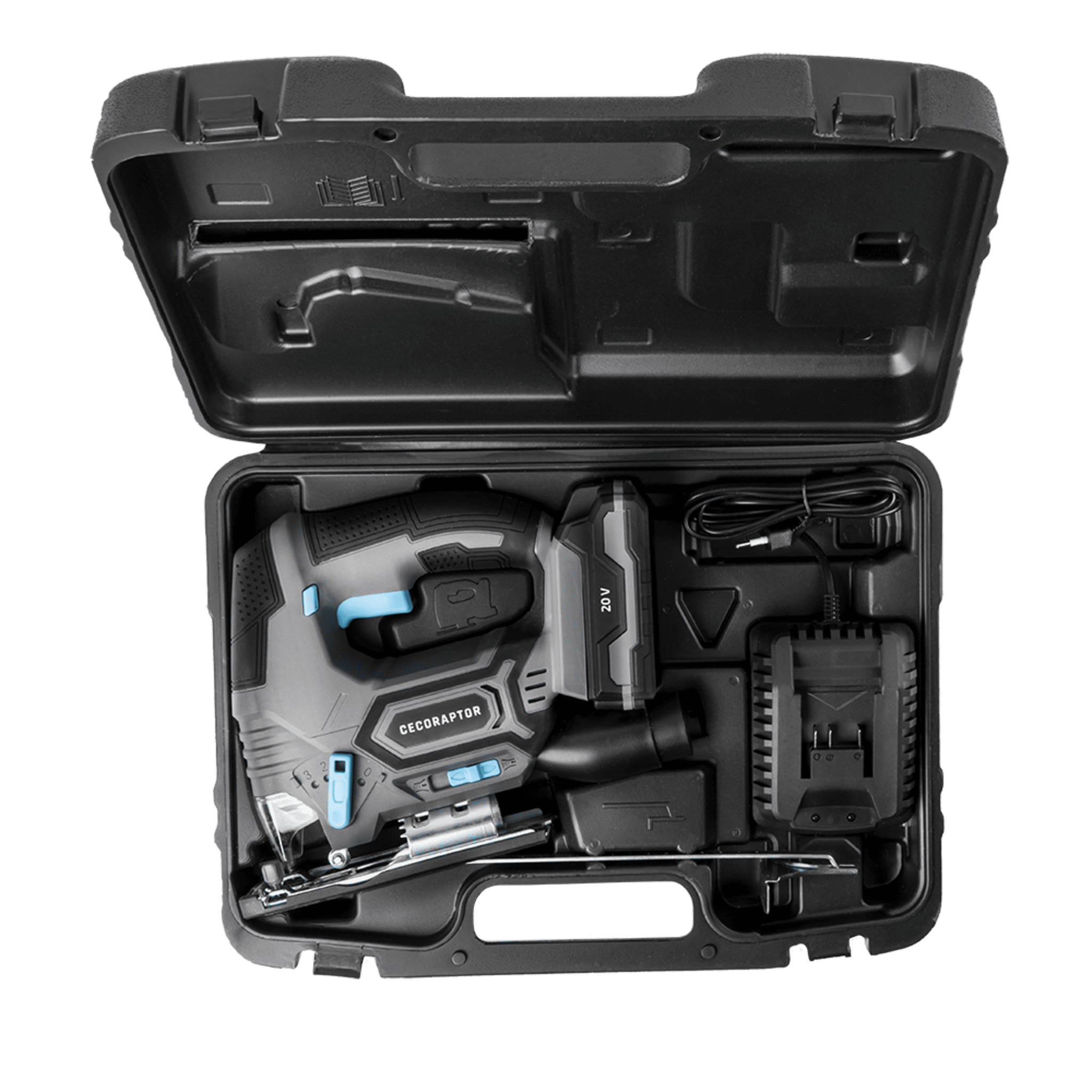 Sierra de Calar sin Cables CecoRaptor Perfect MultiCut 2020 Advance. Batería 20 V y 2000 mAh, Velocidad sin carga de 2700 rpm, Profundidad Corte 80mm Madera, 12mm Aluminio y 5mm Metal
