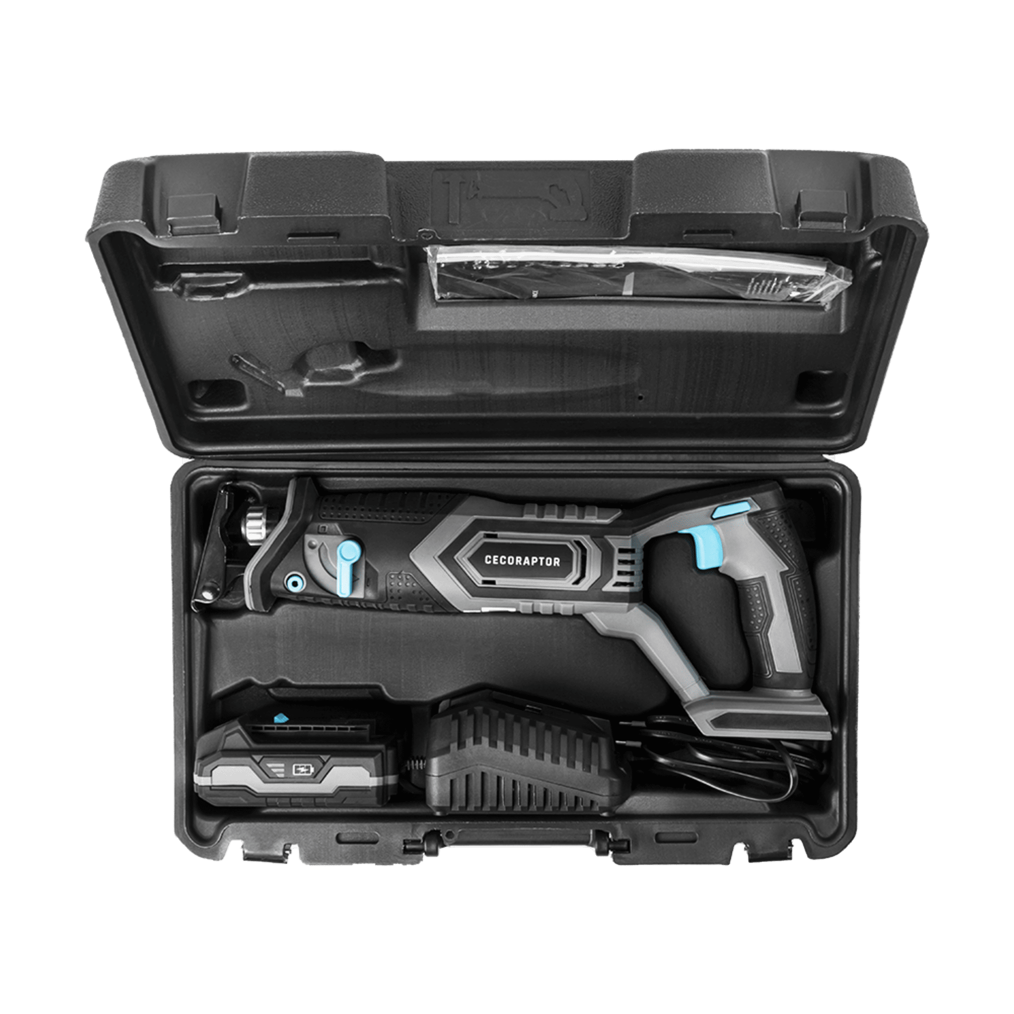 Sierra de Sable sin Cables CecoRaptor Perfect Quick&Cut 2020 Advance. Batería 20V y 2000 mAh, Frecuencia de Oscilación 3000spm, Profundidad Corte 100mm Madera, 10mm Aluminio, 8mm metal