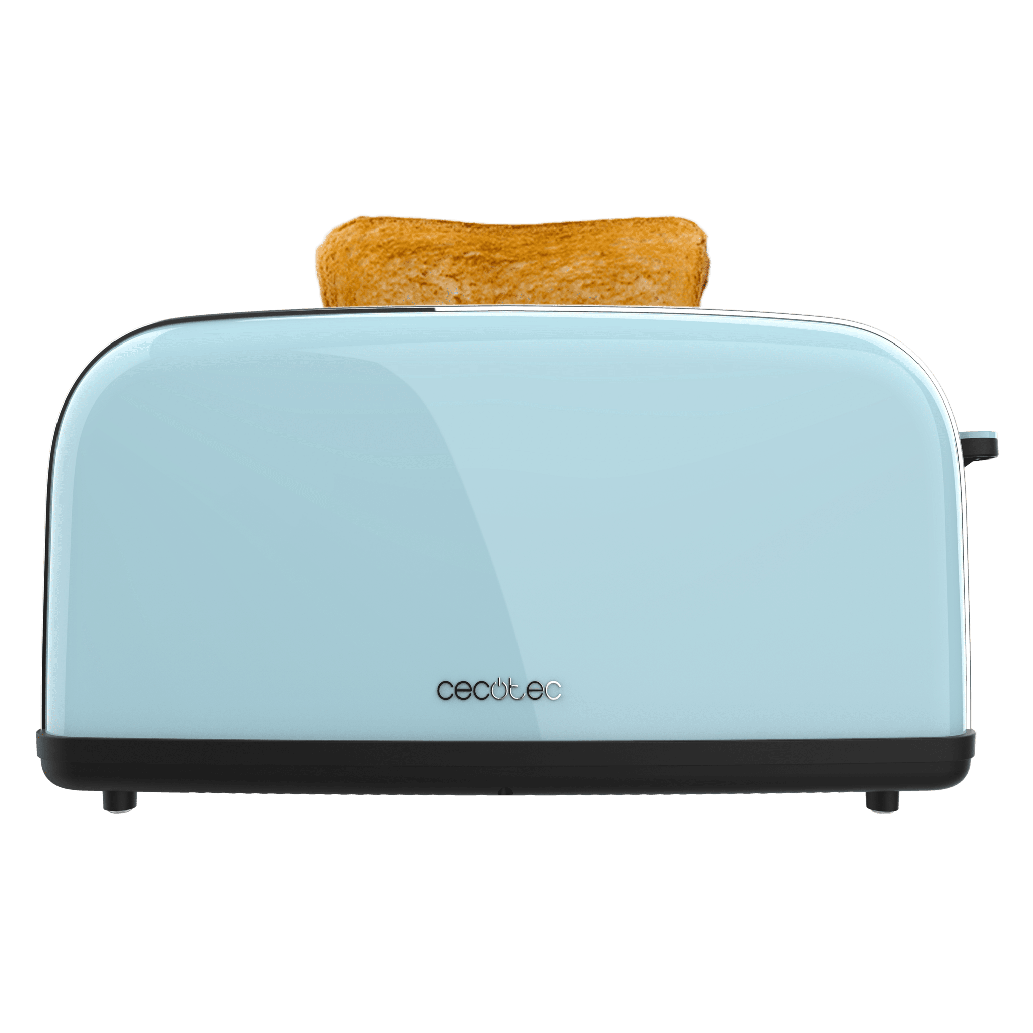 Tostador vertical de acero con una ranura larga, 850 W de potencia y soporte para panecillos.