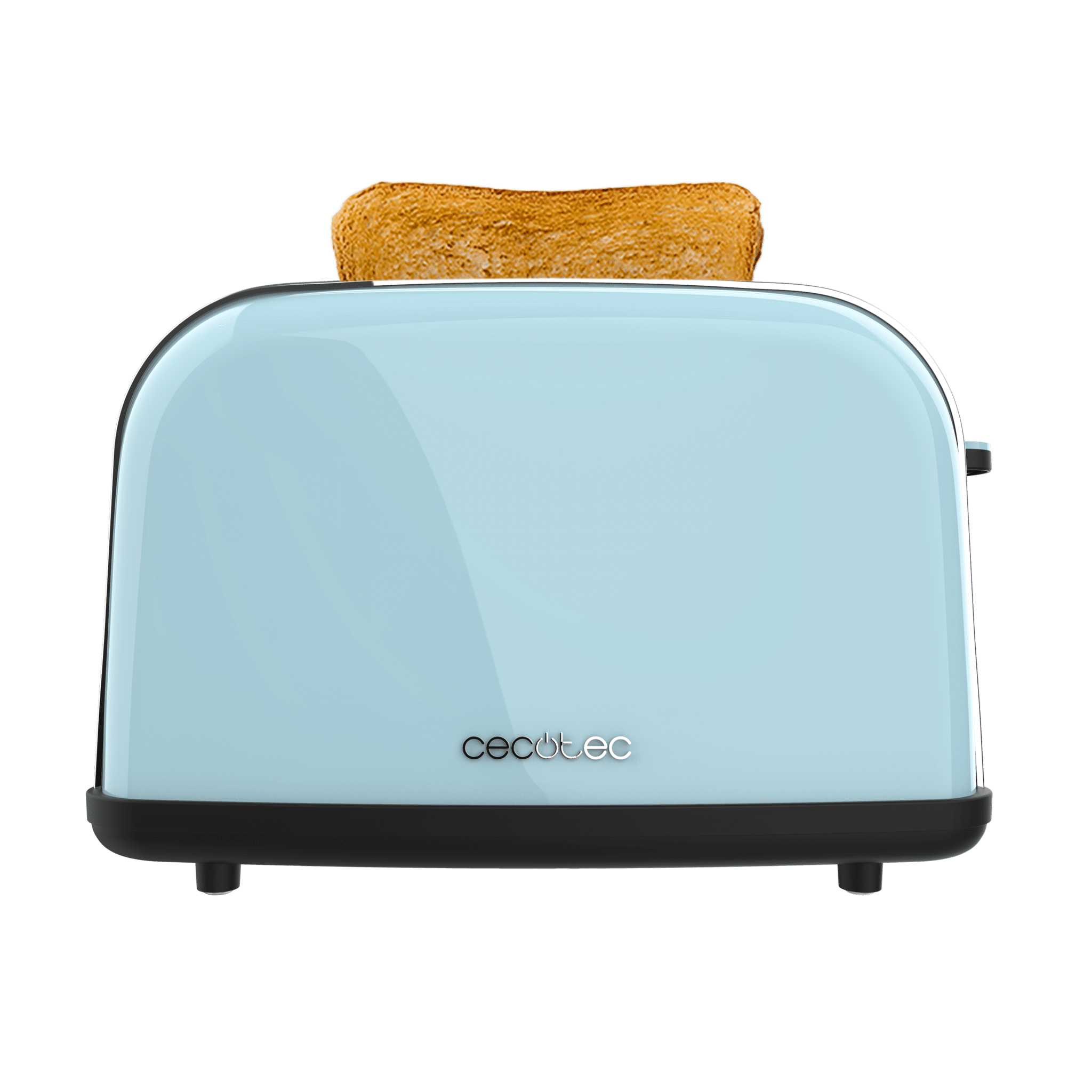 Tostador vertical de acero con doble ranura corta, 850 W de potencia y soporte para panecillos.