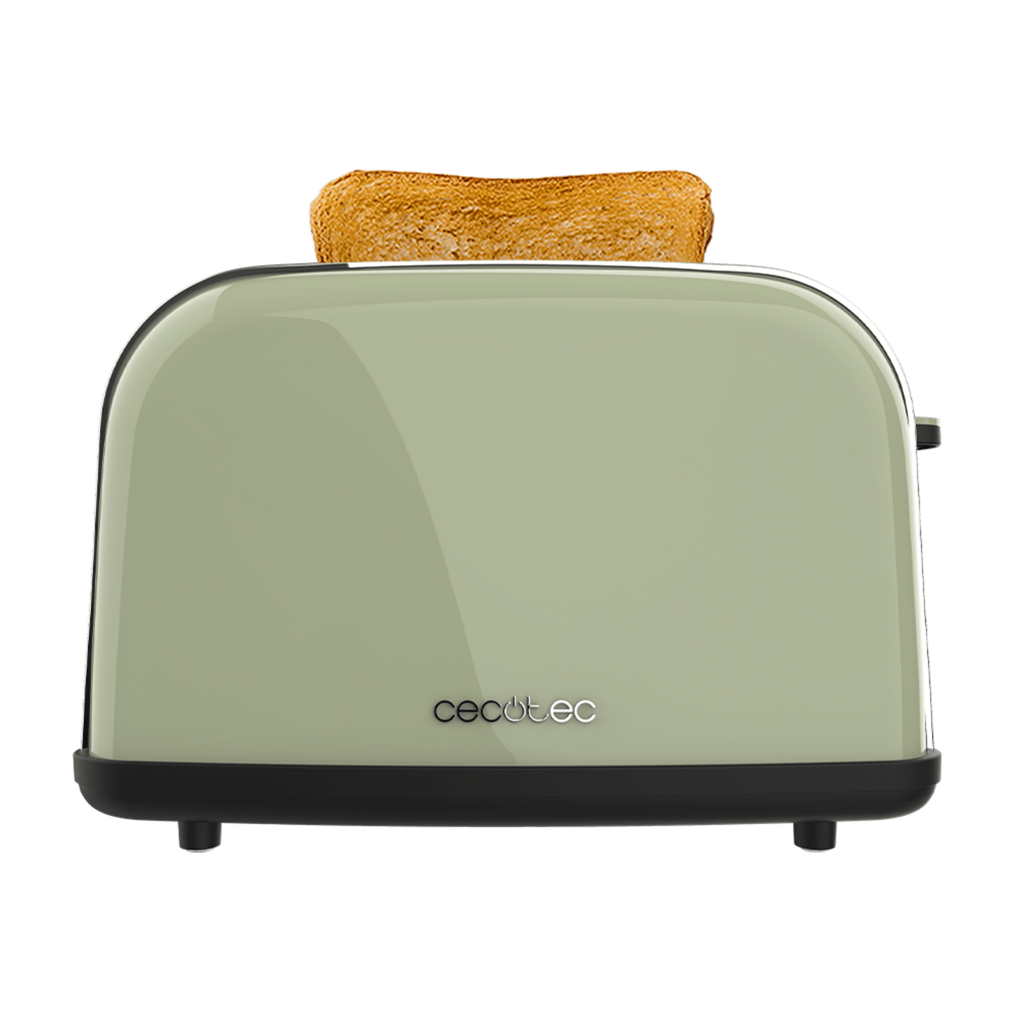 Tostador vertical de acero con doble ranura corta, 850 W de potencia y soporte para panecillos.