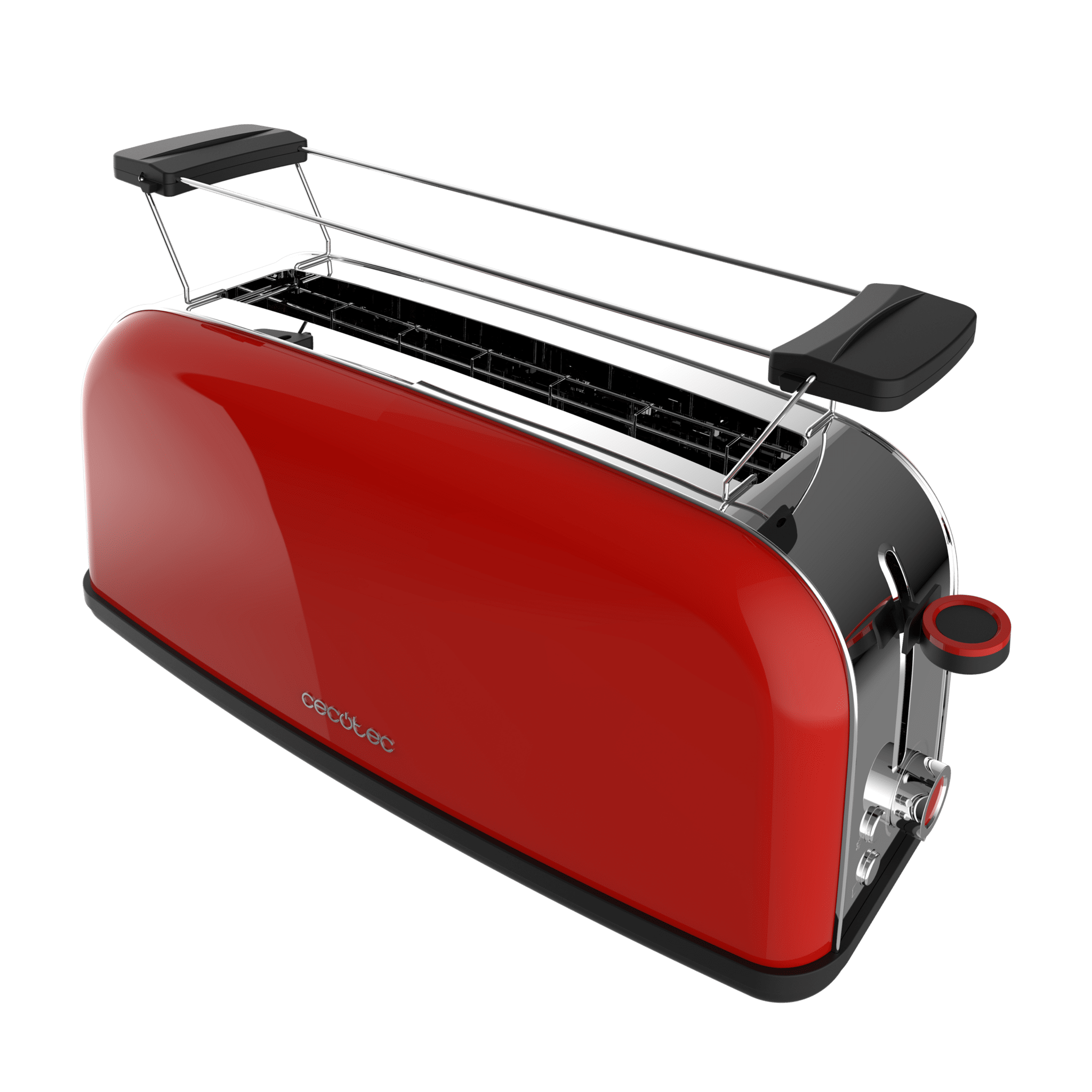Tostador vertical de acero con una ranura larga, 850 W de potencia y soporte para panecillos.