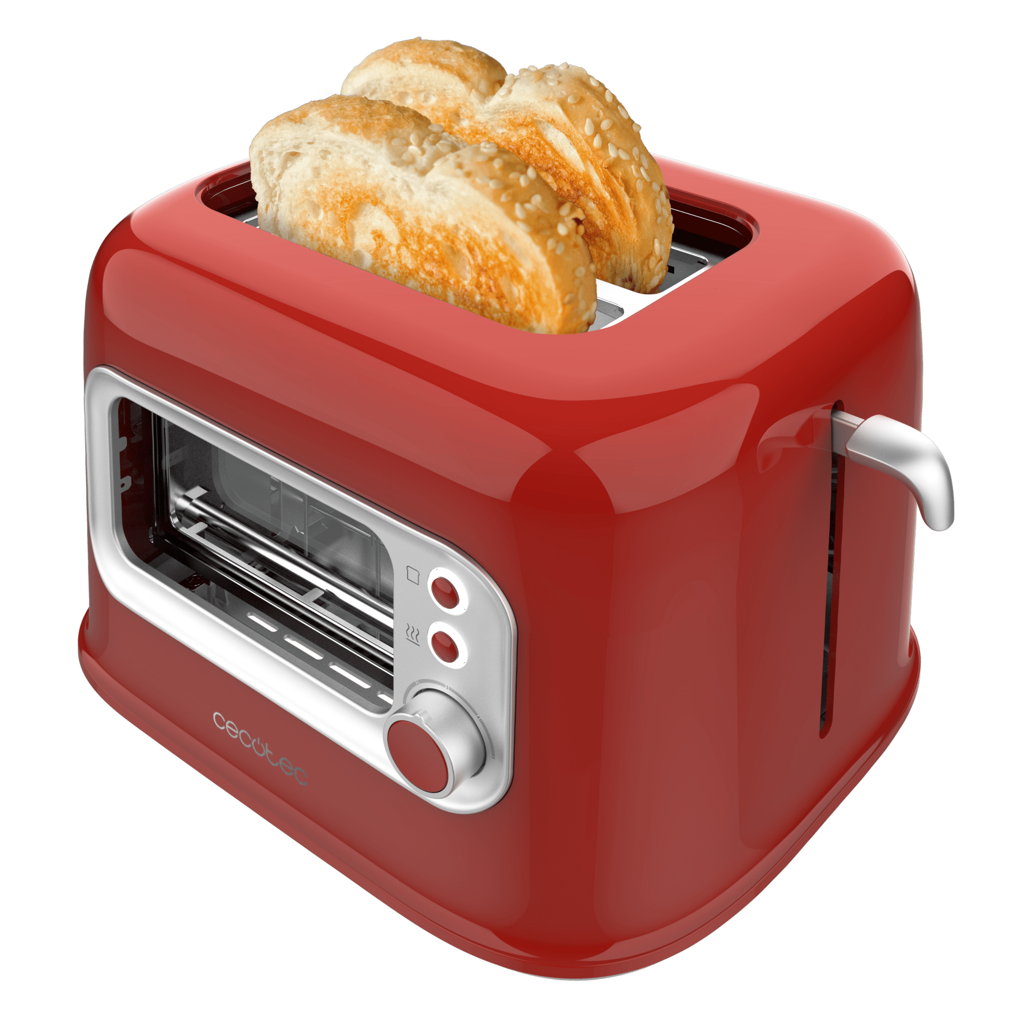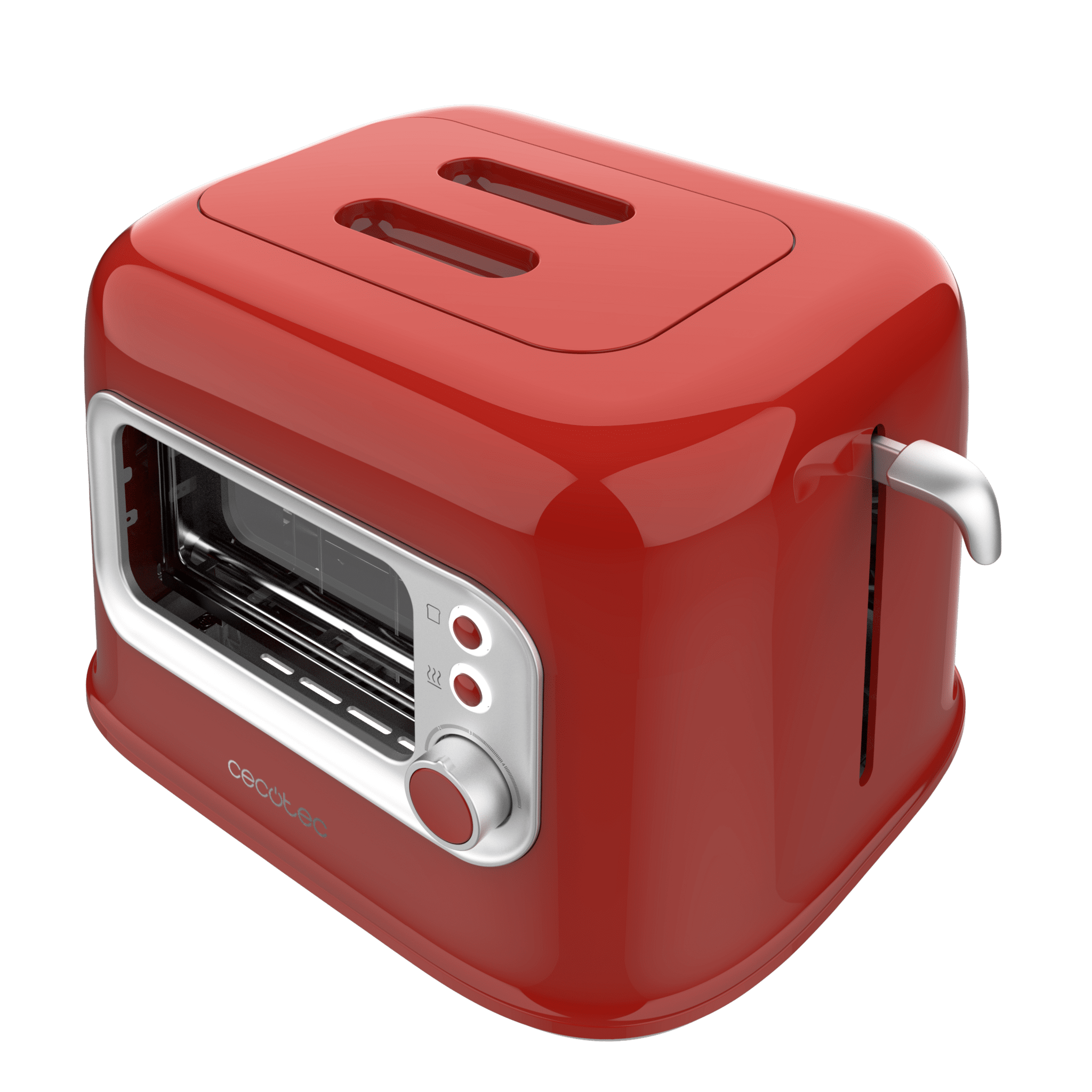 Tostadora con pared con ventana de cristal y diseño retro. Ranuras cortas con capacidad para dos tostadas anchas. Incluye cubierta antipolvo. 700 W de potencia y 5 niveles de tostado.