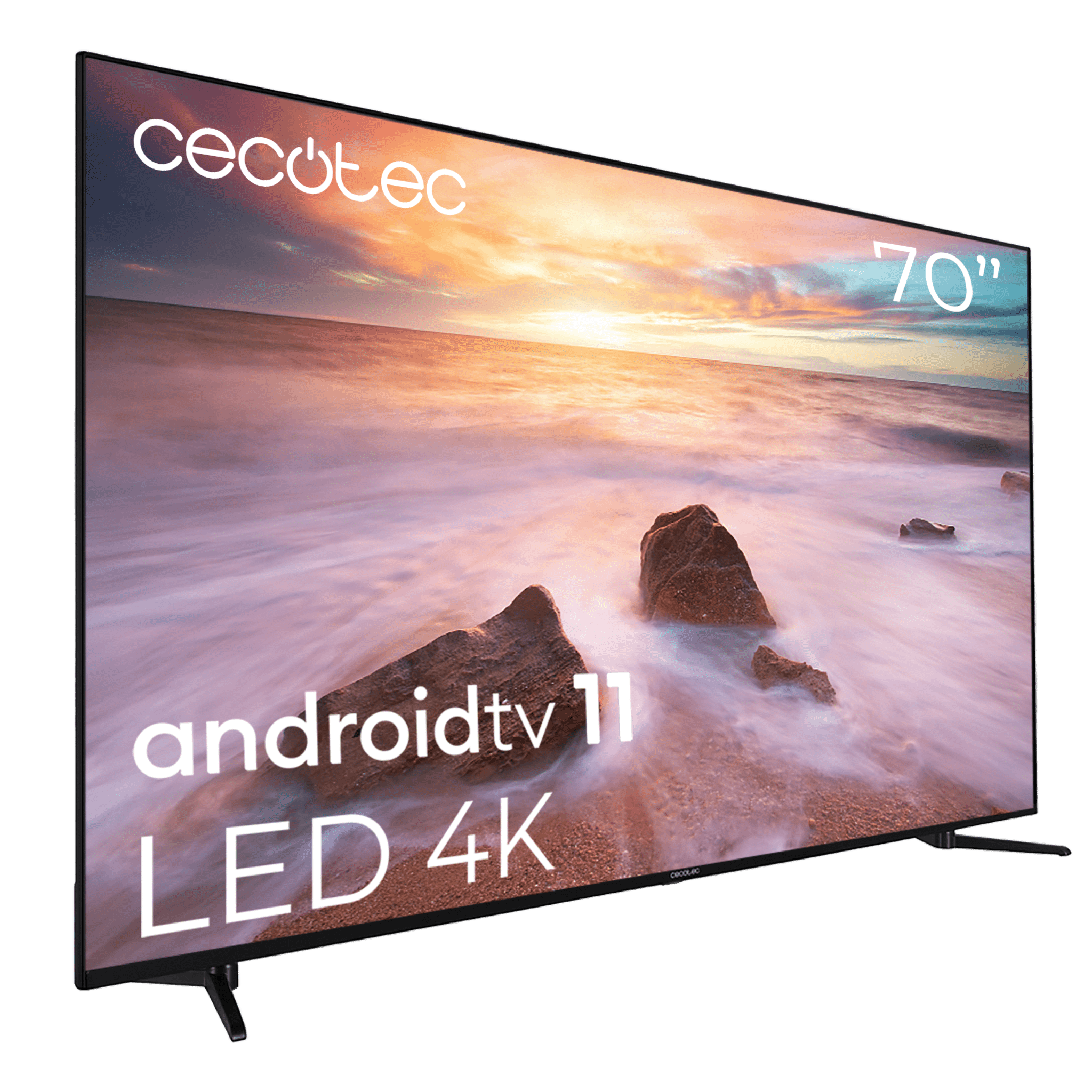 Televisión LED 70” con resolución 4K UHD, sistema operativo Android TV 11, Chromecast, HDR10+, Google Voice Assistant, clase E.