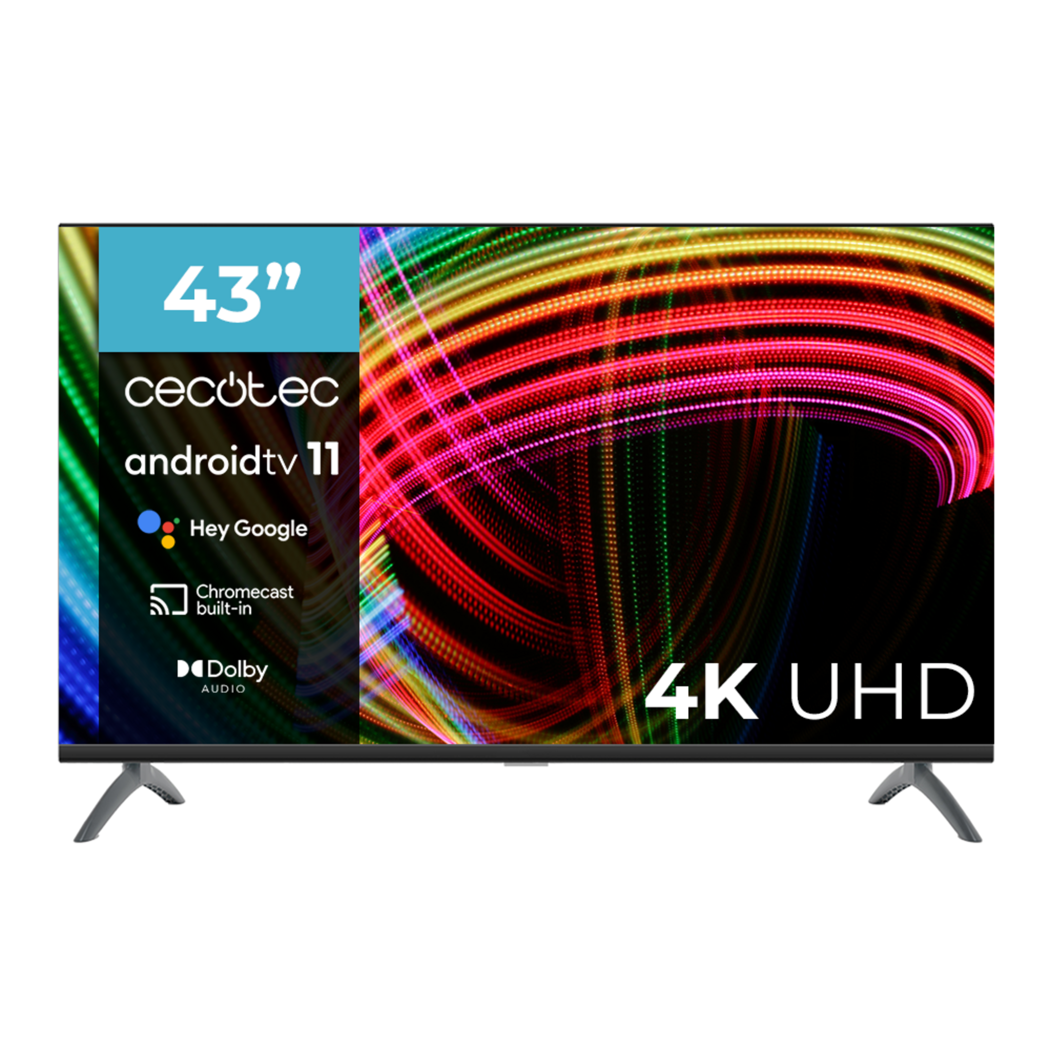 Televisión LED de 43″ con resolución 4K UHD, sistema operativo Android TV 11, Google Voice Assitant y Chromecast. Frameless. HDMI 2.1. Modo Hotel y conectividad rápida