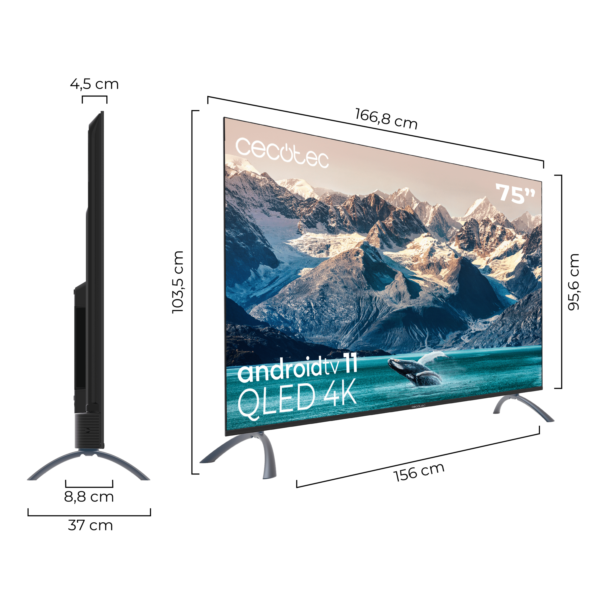 Televisión QLED de 75″ con resolución 4K UHD, sistema operativo Android TV 11, Google Voice Assitant y Chromecast.