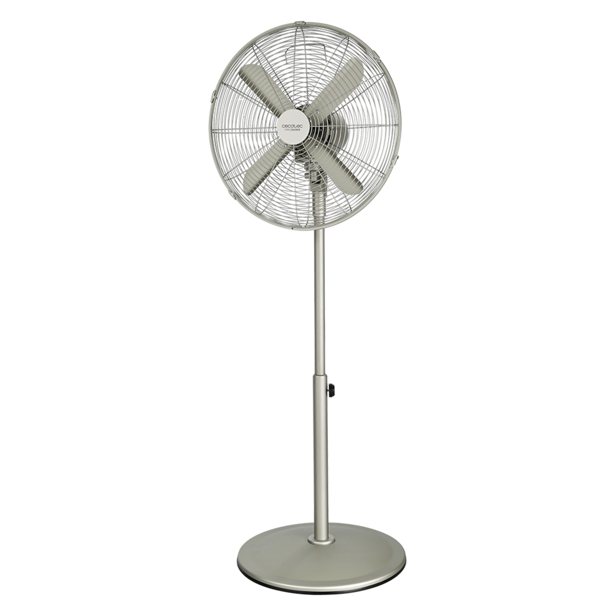Ventilador de pie con 50 W y acabado en acero, 16 pulgadas, 3 velocidades, oscilación, silencioso, altura ajustable, 4 aspas y máxima seguridad.