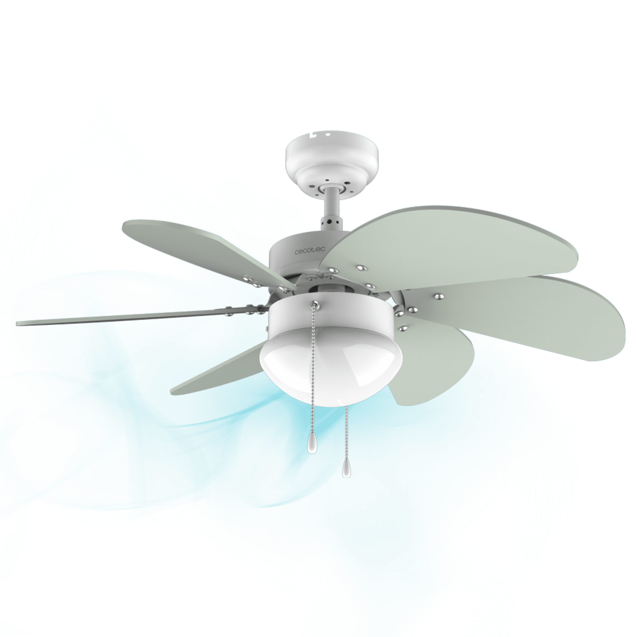 Ventilador de techo EnergySilence 3600 Vision Mint. 50 W, Diámetro 92 cm, Lámpara, 3 Velocidades, 6 Aspas reversibles, Función Verano/Invierno, Interruptor de Cadena, Blanco/Menta