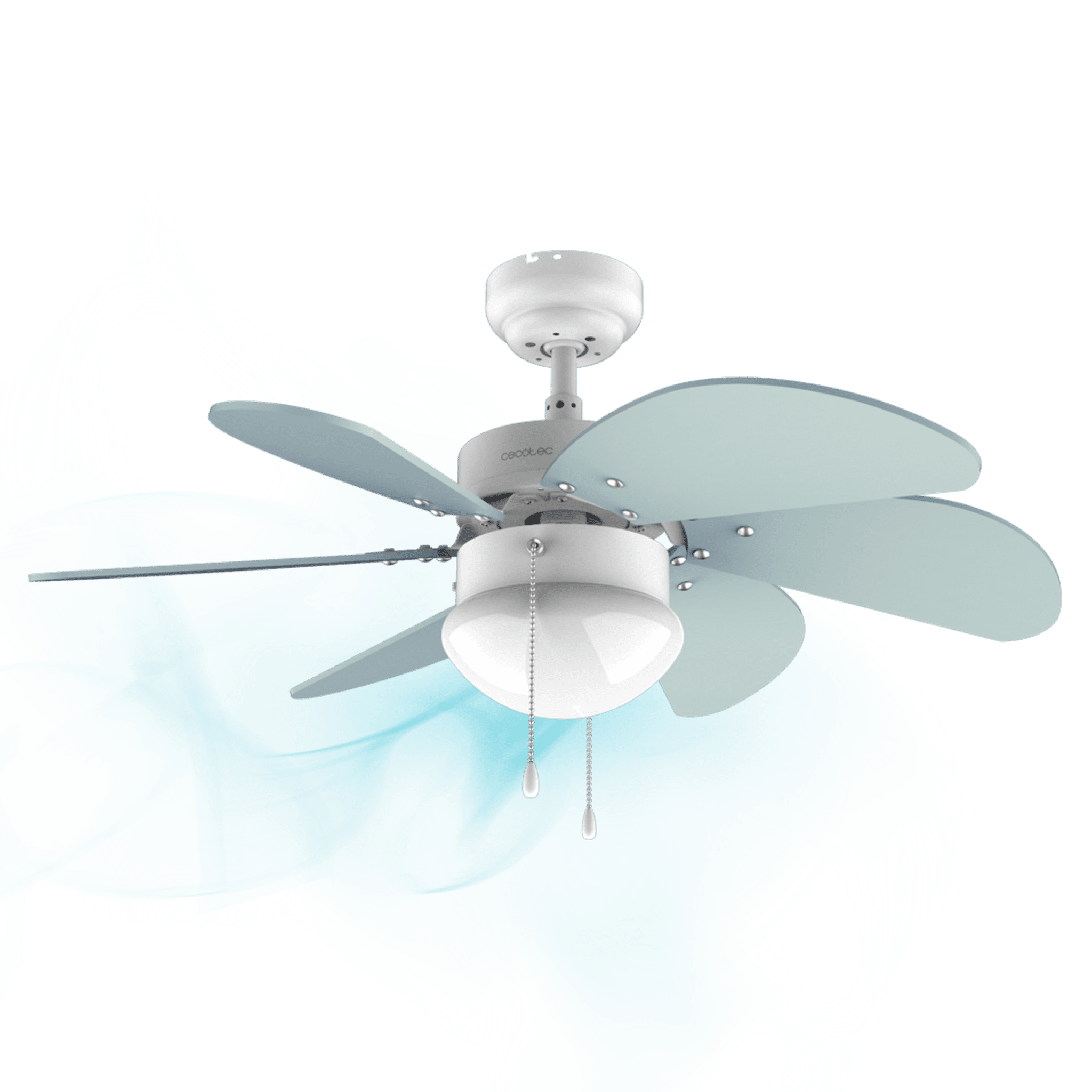 Ventilador de techo EnergySilence 3600 Vision Sky. 50 W, Diámetro 92 cm, Lámpara, 3 Velocidades, 6 Aspas reversibles, Función Verano/Invierno, Interruptor de Cadena, Blanco/Azul
