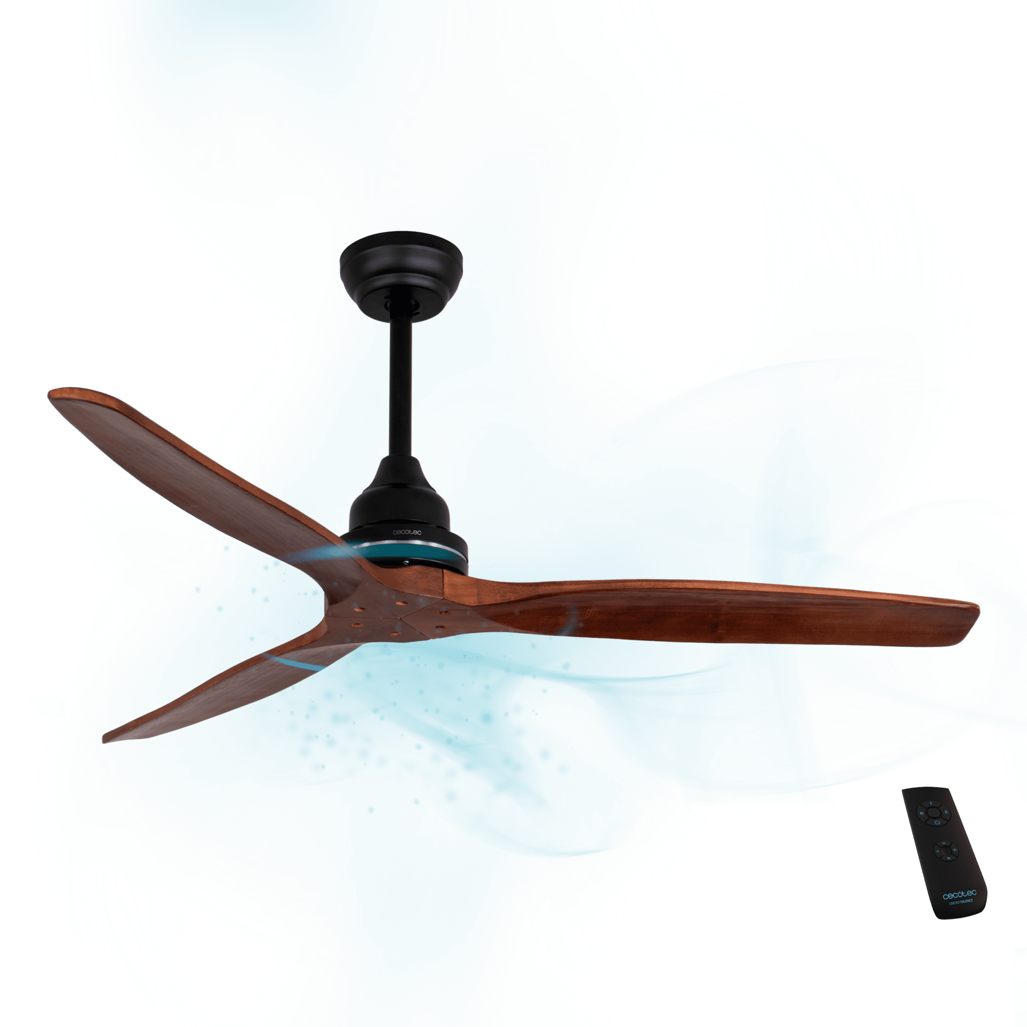 Ventilador de Techo con Mando a Distancia y Temporizador EnergySilence Aero 580. 70 W, Bajo Consumo, 3 Aspas de 52″/132cm de Diámetro, Motor de Cobre, 3 Velocidades, Color Nogal
