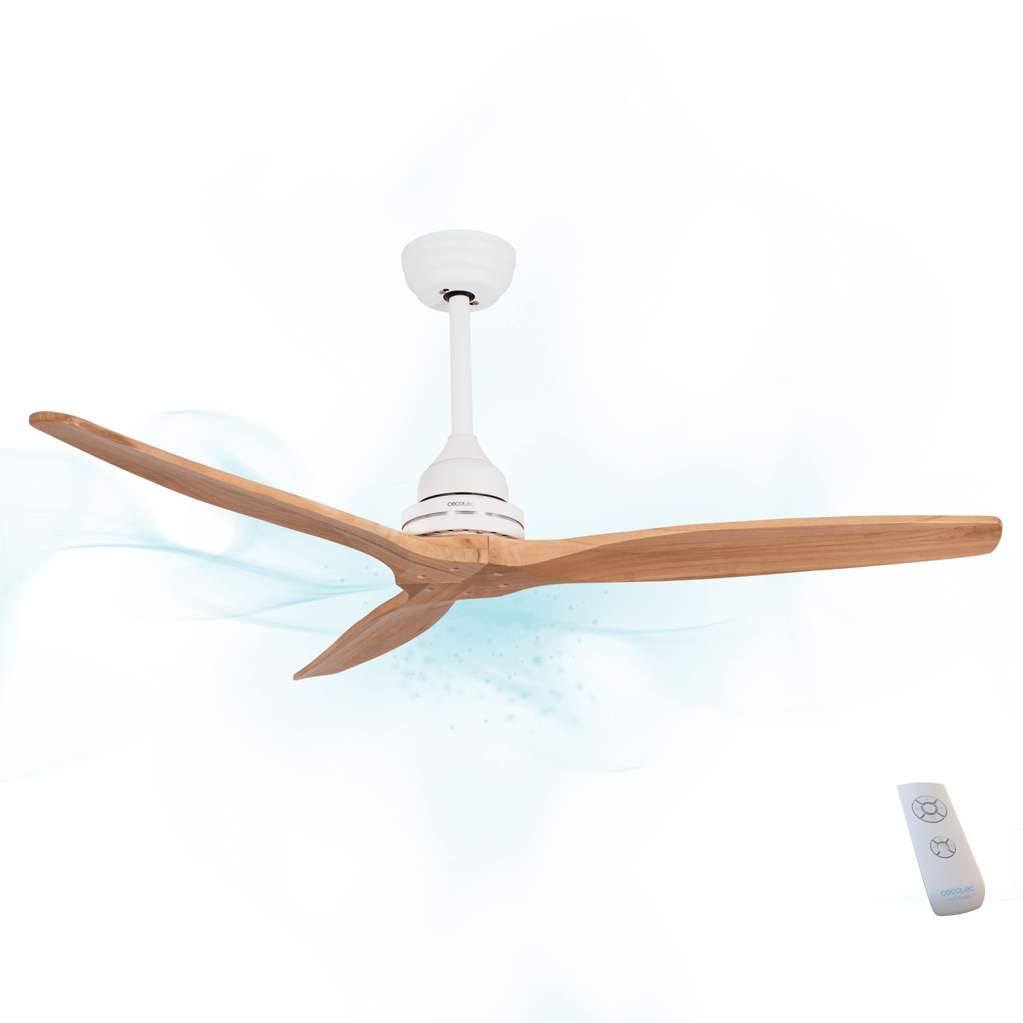 Ventilador de Techo con Mando a Distancia y Temporizador EnergySilence Aero 590. 70 W, Bajo Consumo, 3 Aspas de 52″/132cm Diámetro, Motor de Cobre, 3 Velocidades, Color Haya