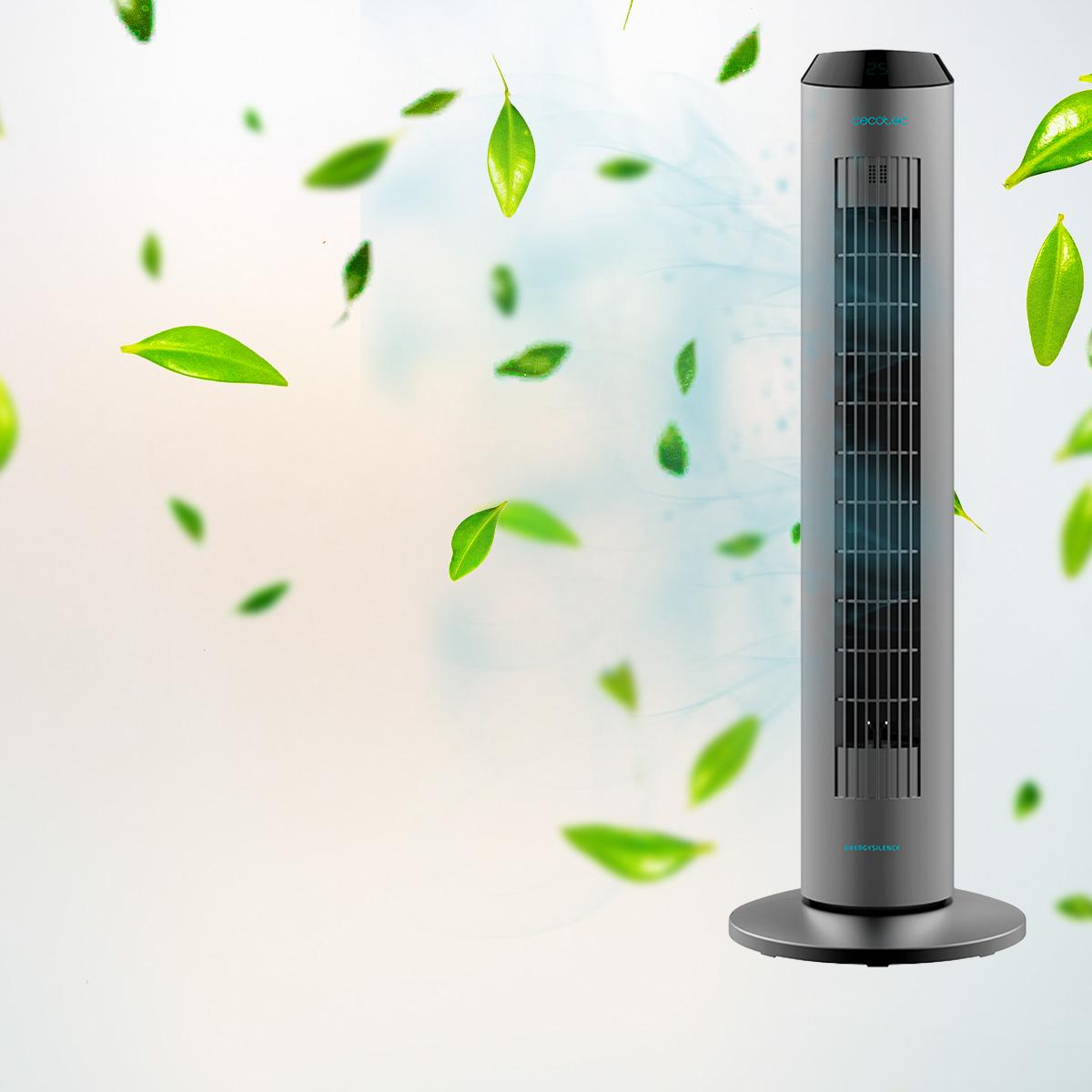 Ventilador de Torre Digital con Mando a Distancia y Temporizador EnergySilence 8190 Skyline Ionic. 60 W, 33» (84cm) de Altura, Oscilante, Ionizador, Motor de Cobre, 3 Velocidades, Gris