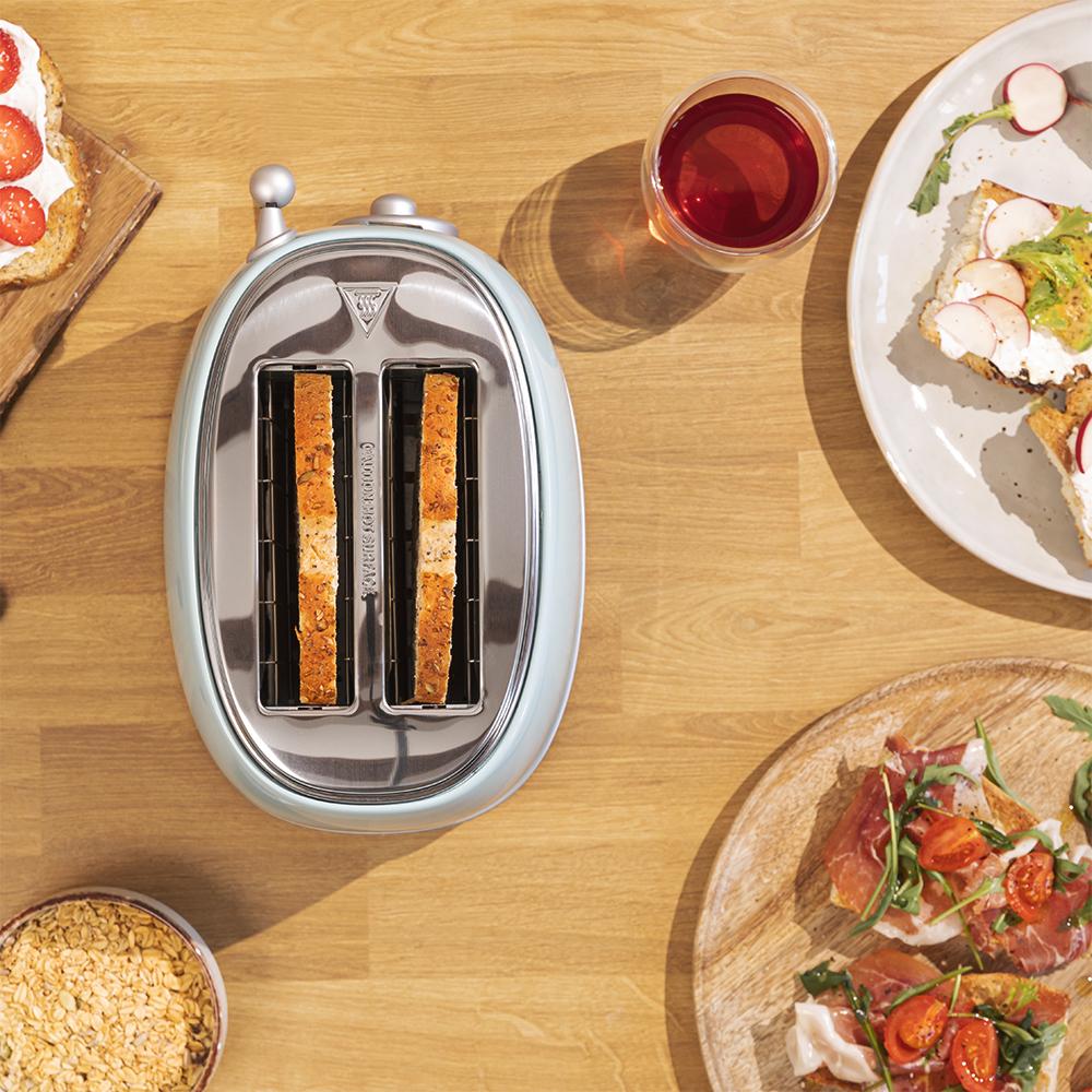 Tostadora Toast&Taste 800 Vintage Light Blue. 850 W, Doble Ranura Corta Extra anchas de 3,8 cm, 2 Tostadas, Acabados en Acero Inoxidable, Estilo Vintage, 3 Funciones, Azul