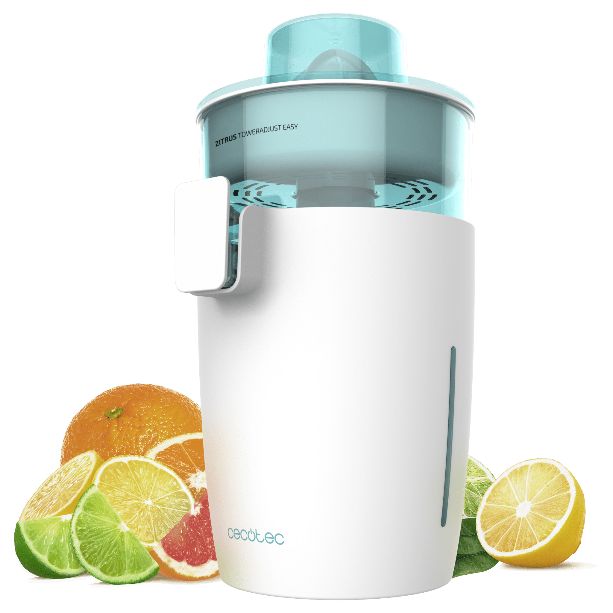 Exprimidor de torre eléctrico de 800 W con dos conos desmontables, regulador de pulpa y boquilla antigoteo.